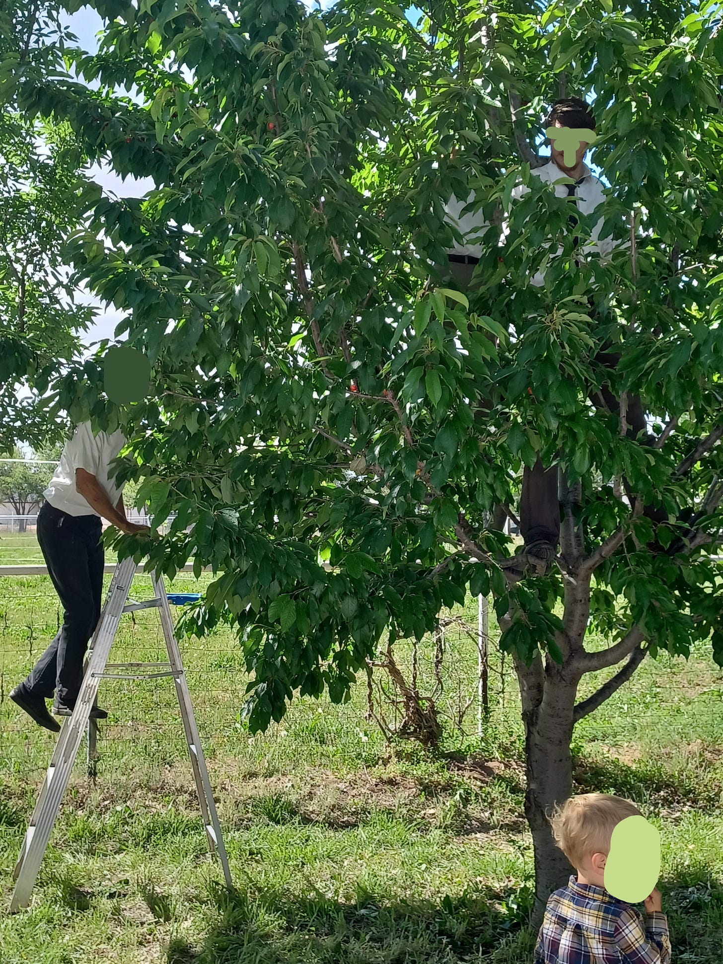 Better yet, tell your grown children when the cherries are coming on so they can converge with their own children at the old place. (Extended family, family continuity, generations, family succession, harvest, primary production, nature, out of doors, extended values)